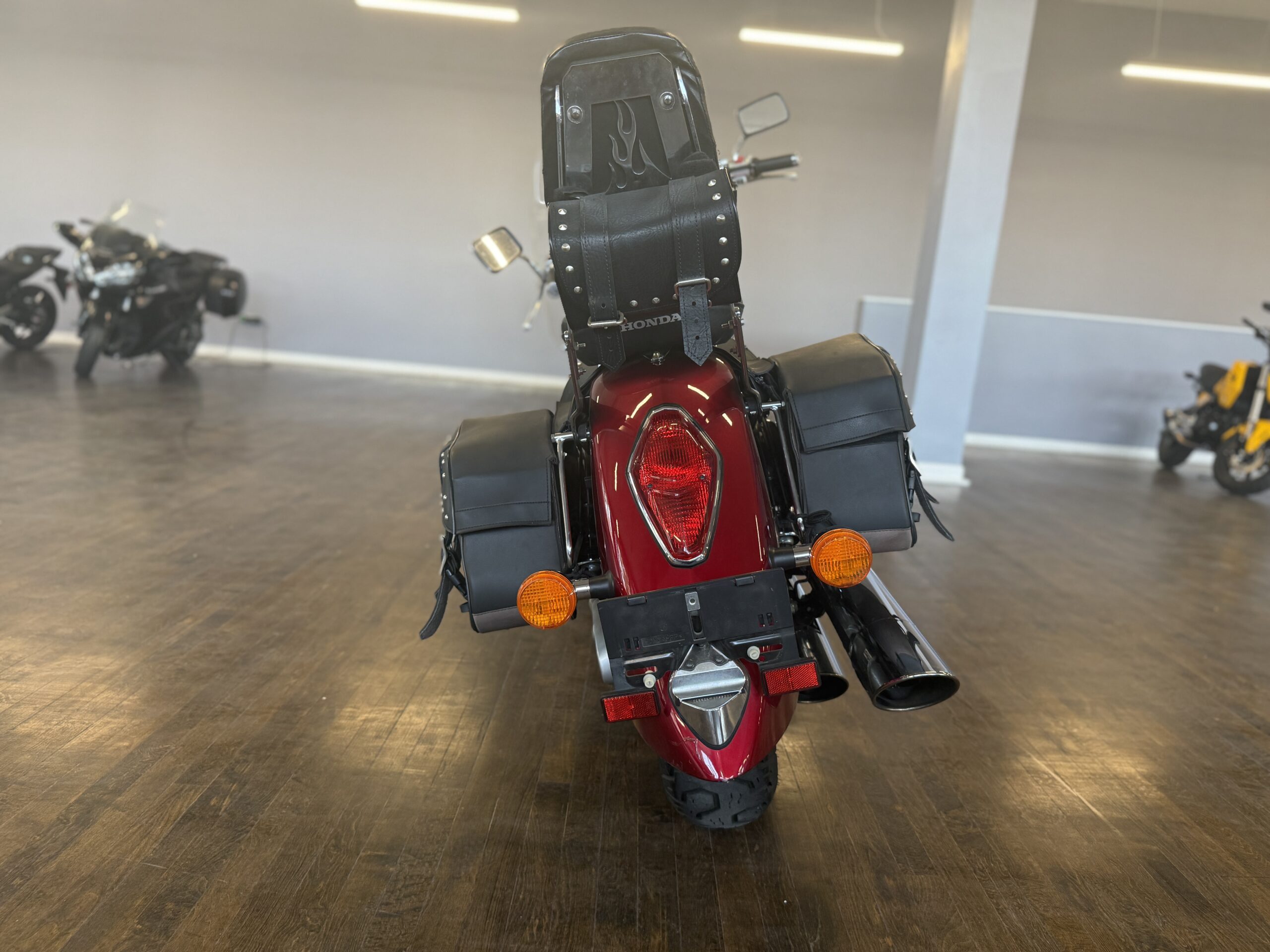 ✅ Leather Saddlebags – Convenient storage for the road