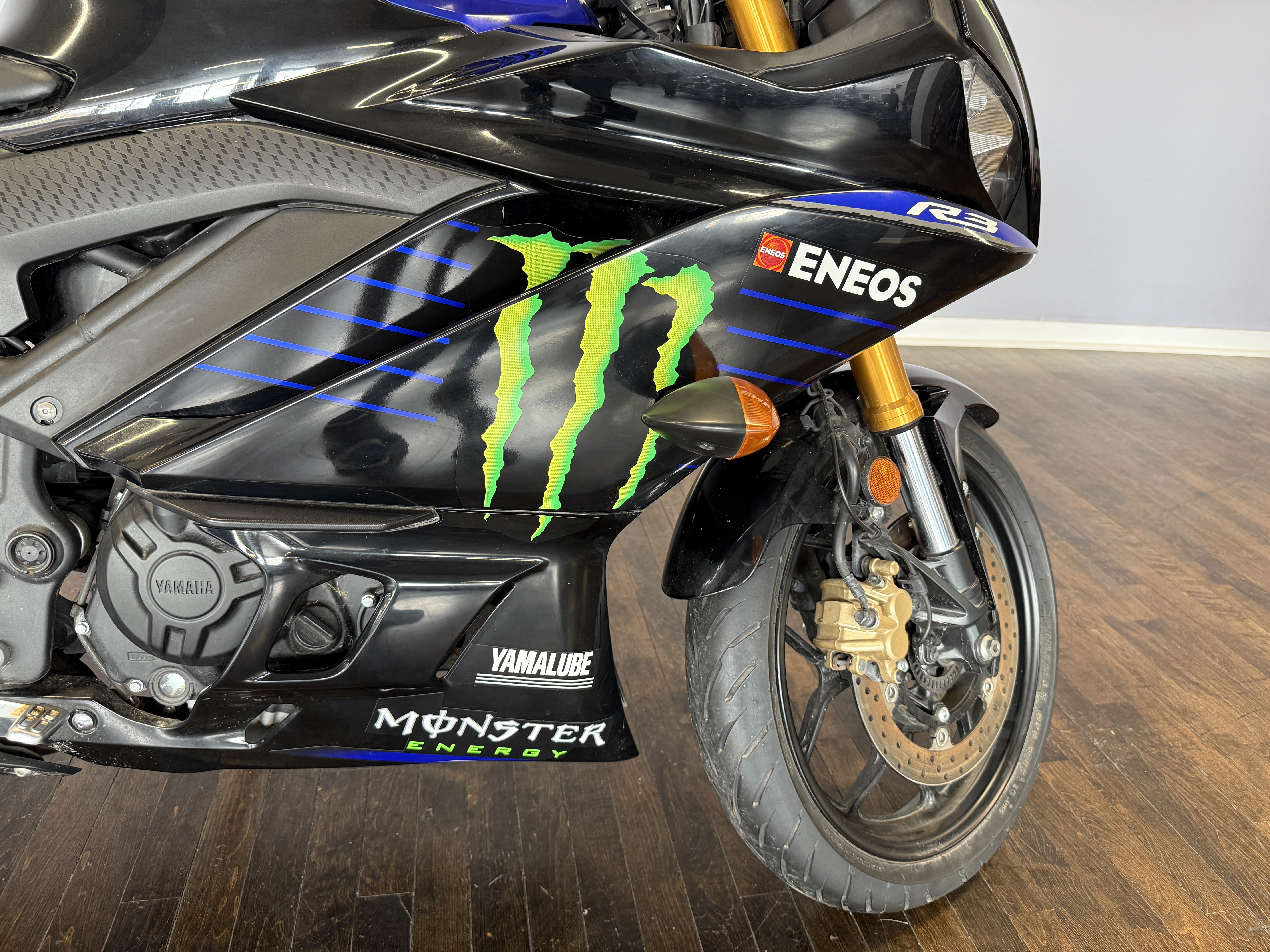 his Yamaha YZF-R3 Monster Energy MotoGP Edition is a lightweight, high-performance sportbike with an aggressive racing look inspired by Yamahaβs MotoGP team. Perfect for new riders or experienced motorcyclists looking for a nimble and stylish ride, this R3 comes equipped with a phone holder and a brand-new battery so you can hit the road with confidence.